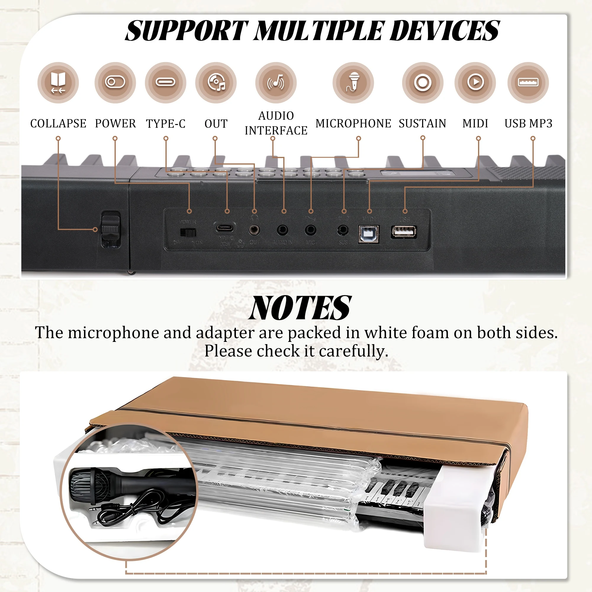 2. LIGHT UP KEYS TEACHING MODE: With its innovative light up keys and teaching follow mode, this electronic piano guides beginners step by step, making learning fun and accessible for all skill levels.