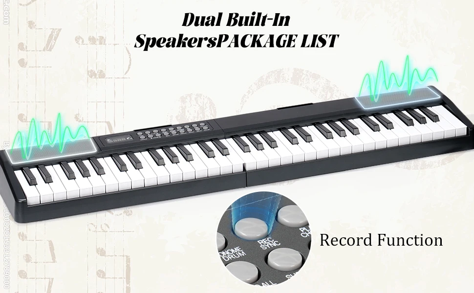 61 Keys Portable Keyboard Piano 1000 Tones 150 Demo Songs Folding Electronic Keyboard Piano Black