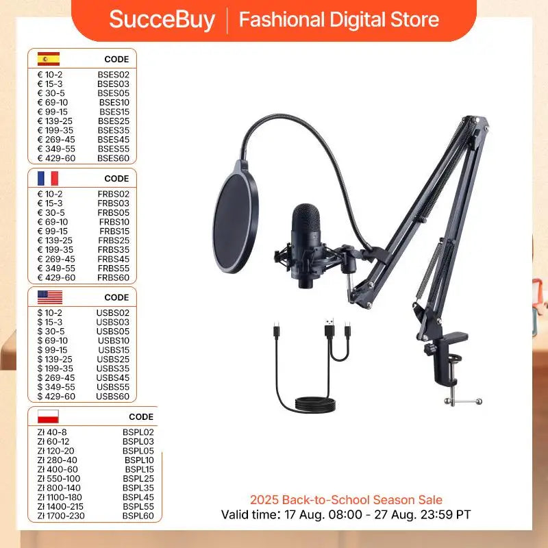 VEVOR USB Microphone 192kHz/24-bit Professional Condenser Microphone Kit for Podcast Recording Video Gaming Singing Streaming